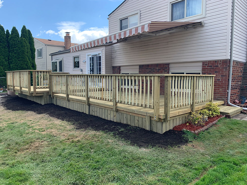 A quality deck provides increased livable space to any home, while improving the home’s value and functionality. This low maintenance, extended wooden deck is a showpiece and the perfect location for any backyard BBQ, block party or family gathering.